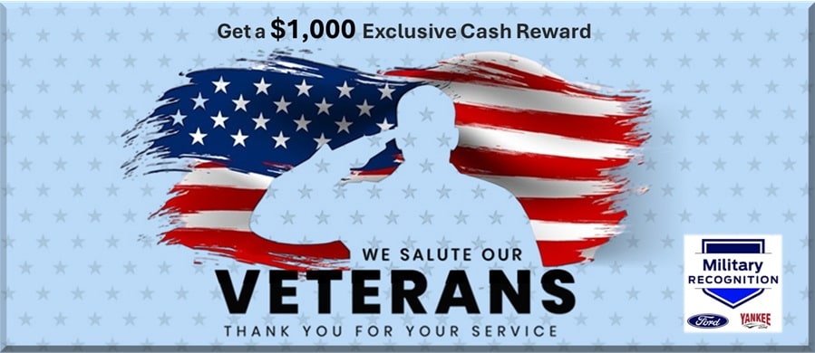 Ford Motor Company is grateful to you for your honorable service to our country and would like to salute those who serve. That's why we're proud to offer you and your families a Military Appreciation Bonus Cash Offer. Visit Yankee Ford today for more information.